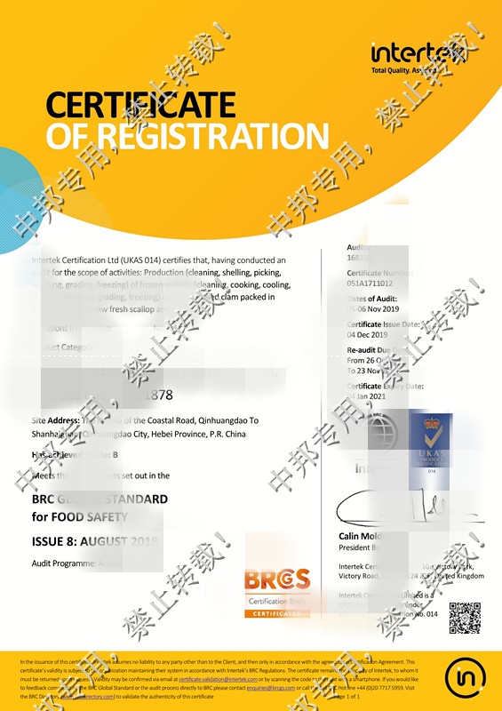恭贺秦皇岛XX食品公司2019年11月顺利通过BRC认证!